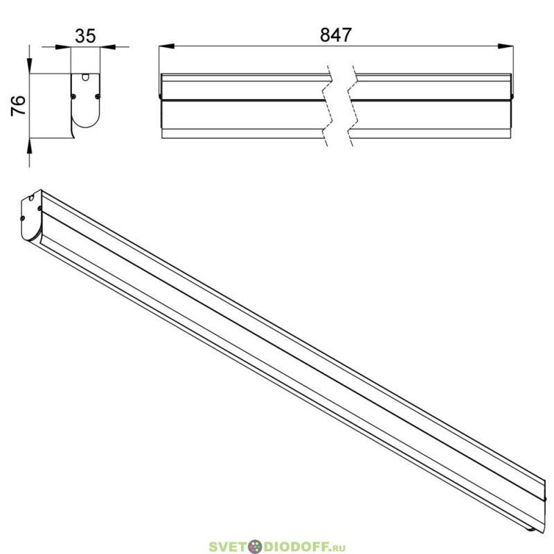 Архитектурный светодиодный светильник ЛИНИЯ Модерн v2.0 Профиль Козырек, 2,5Вт, 343Лм (3Вт/м) 48V DC, 5000К, Опал, 840мм