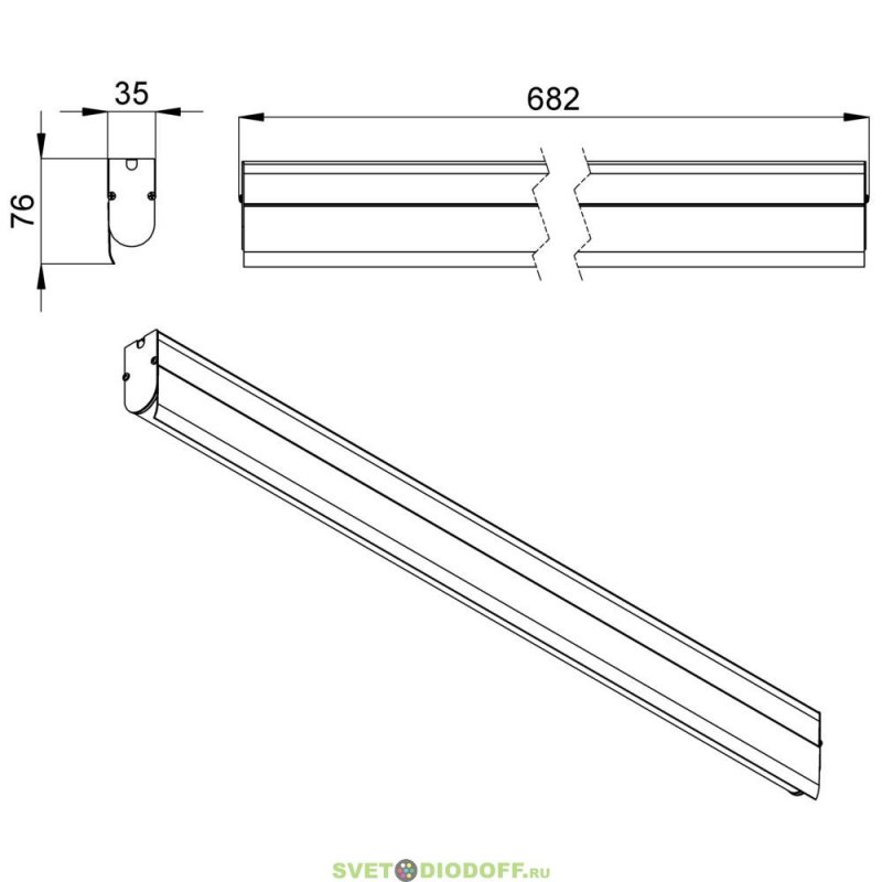 Архитектурный светодиодный светильник ЛИНИЯ Модерн v2.0 Профиль Козырек, 2,0Вт, 250Лм (3Вт/м) 48V DC, 3000К, Опал, 675мм