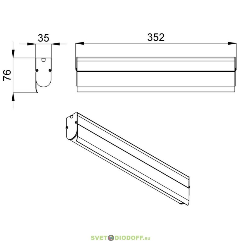 Архитектурный светодиодный светильник ЛИНИЯ Модерн v2.0 Профиль Козырек, 1.0Вт, 130Лм (3Вт/м) 48V DC, 3000К, Опал, 345мм