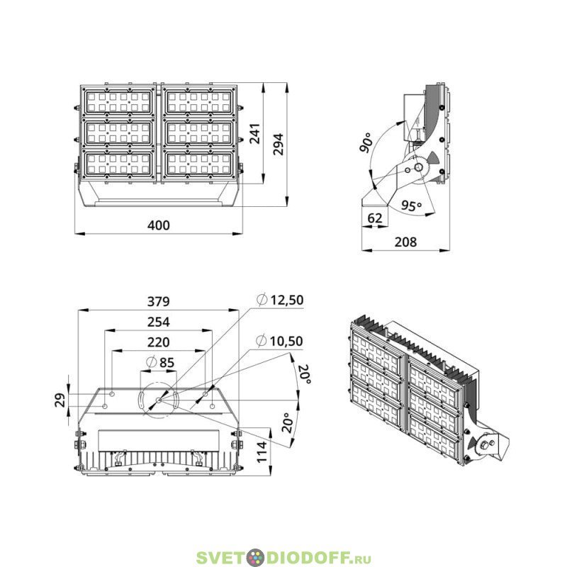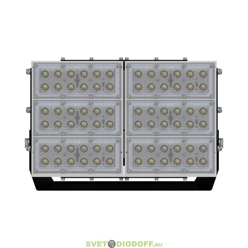 В комплекте идёт кронштейн, который позволяет регулировать угол наклона прожектора. Специальные зубцы на кронштейнах (для светильников 200-300 Вт) дополнительно облегчают регулировку положения прожектора.
