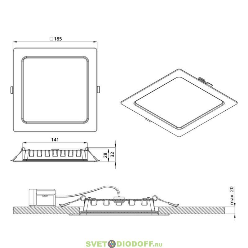 Встраиваемый LED светильник Даунлайт 20 QM DALI 20Вт 2210Лм 3000К Теплый Опал 185×185×32мм