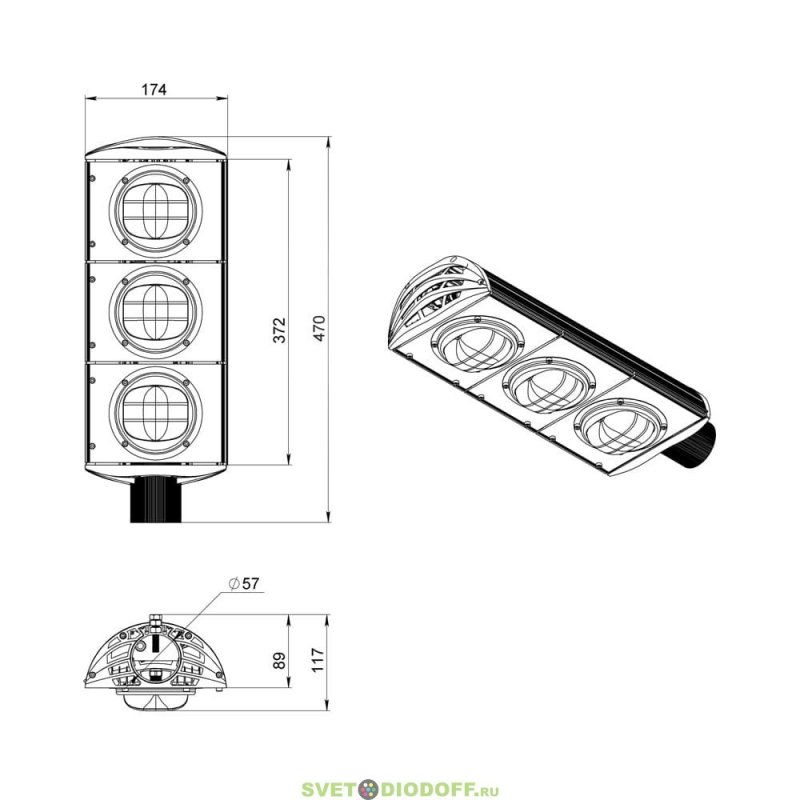 Крепление Светильники крепятся на консоль круглого сечения диаметром до 57 мм.