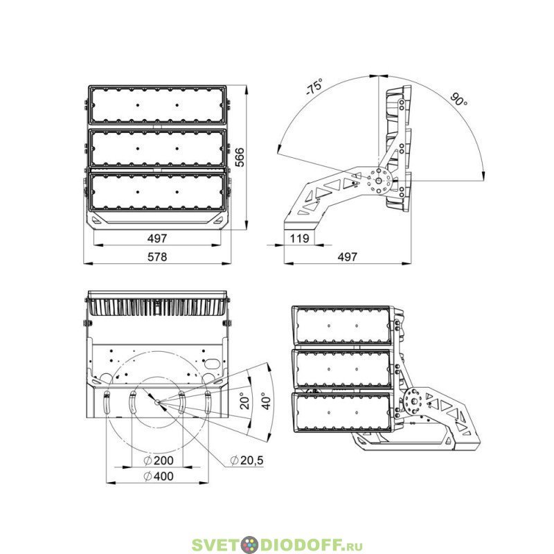 За счет конструкции радиаторной части прожекторы мощностью 400 и 500 Вт на один модуль имеют оптимальное сочетание массы, габаритов и цены за люмен, что особенно важно при выборе светильников для установки на высокомачтовые опоры.