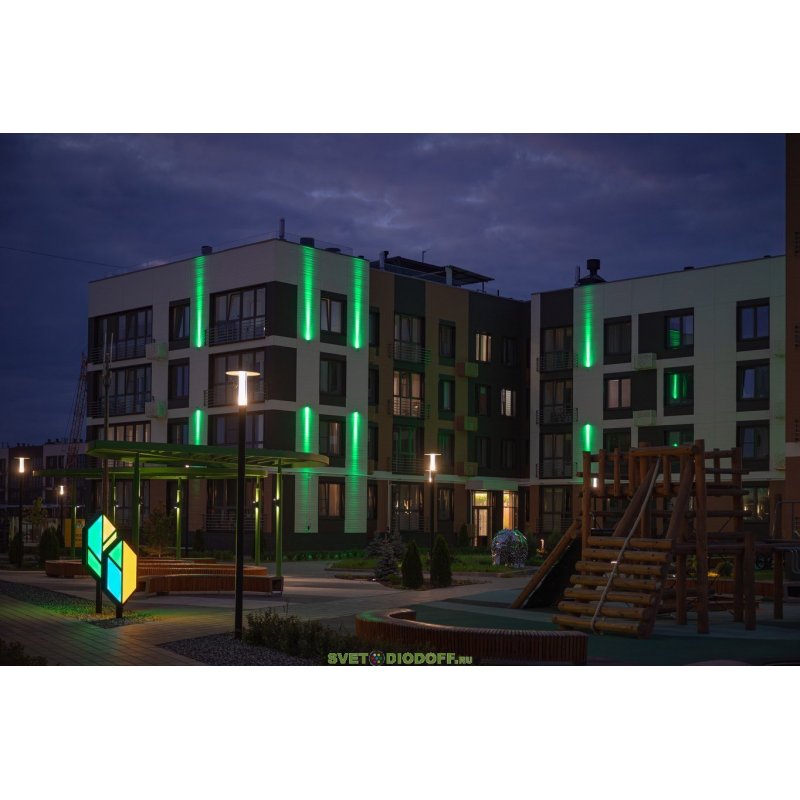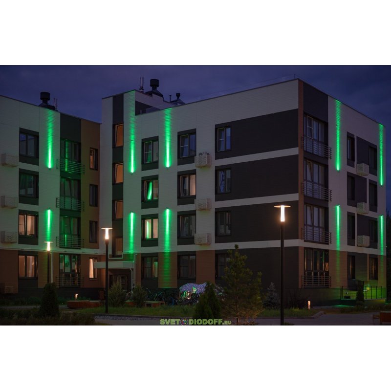 • создания вертикальных световых столбов на фасадах,