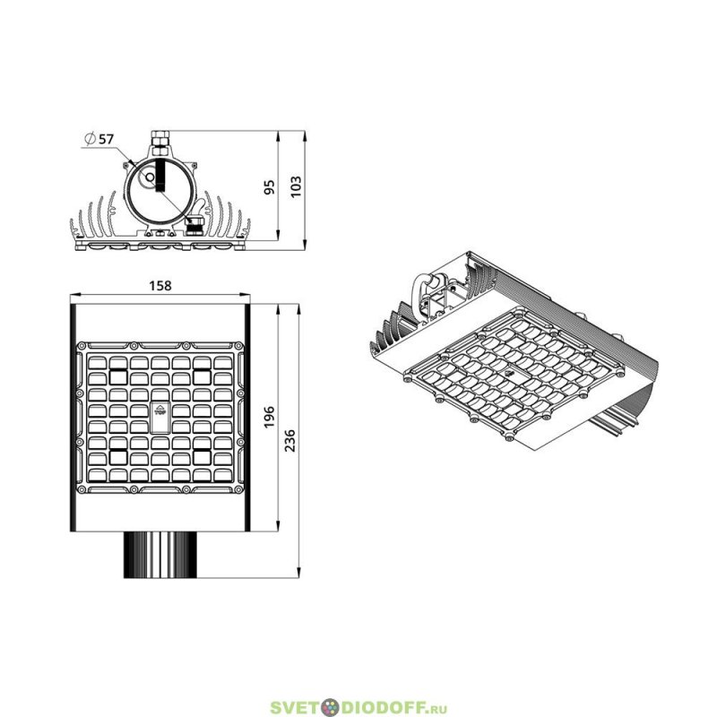 Консольный светодиодный светильник Магистраль v2.0 Мультилинза ЭКСТРА 55Вт, 8180Лм, 3000К, оптика 135×55°, IP67