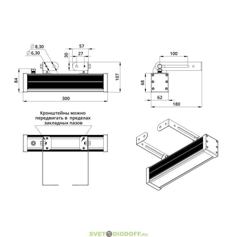 Светильники просты в монтаже за счёт кронштейна с удобной системой фиксации угла поворота.
