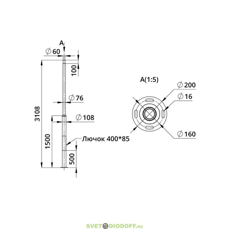 Светодиодный светильник Ламина Торшер 30Вт, 4750Лм, 4000К, линза155х85°, IP66, Опора ОЦ-108-76-3, 3,6м.п.