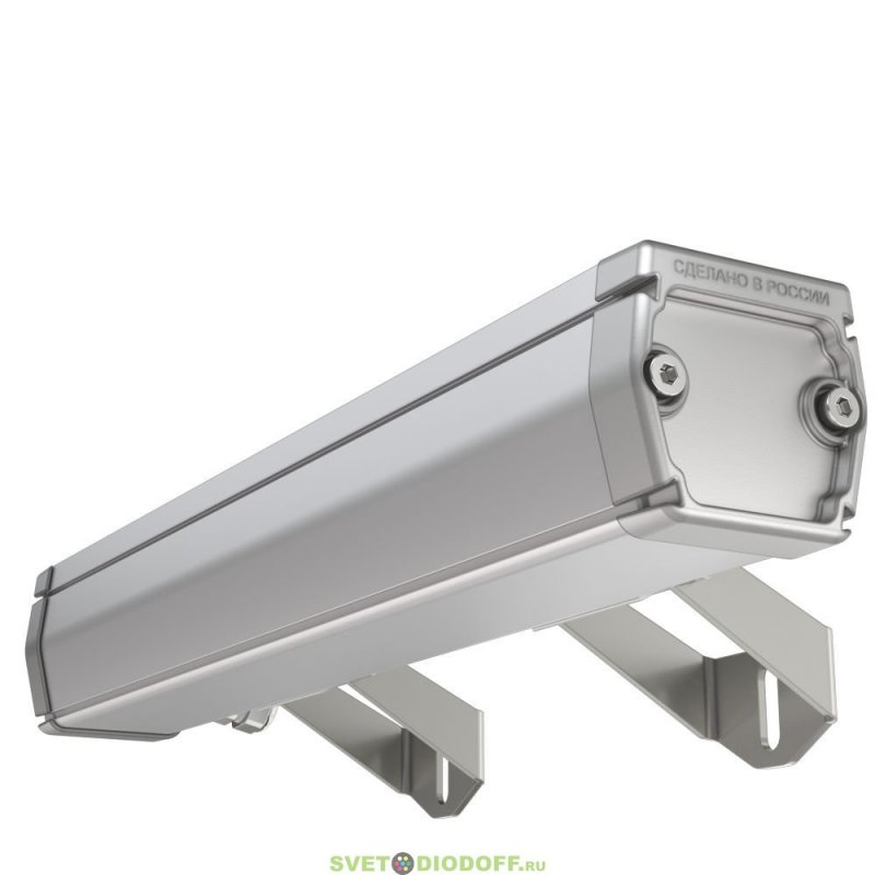 У светильников предусмотрен монтажный профиль с подвижными монтажными скобами, которые перемещаются вдоль корпуса, позволяя скорректировать точки крепления светильника. С помощью этих скоб светильники крепятся на поворотные кронштейны.
