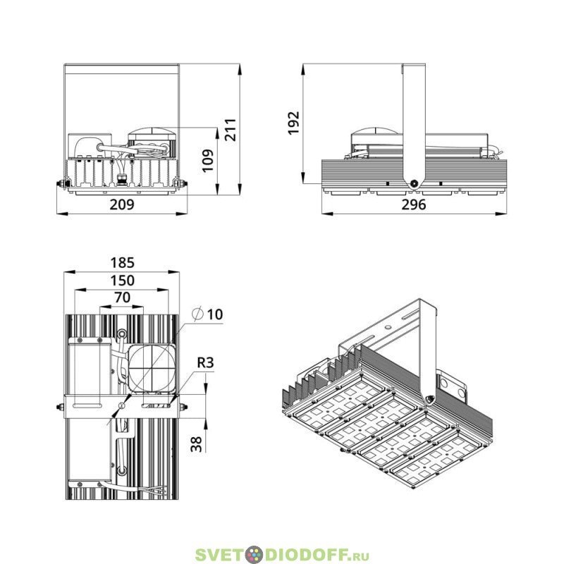 В комплекте идёт кронштейн, который позволяет регулировать угол наклона прожектора. Специальные зубцы на кронштейнах (для светильников 200-300 Вт) дополнительно облегчают регулировку положения прожектора.