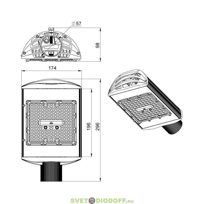 Консольный двухрежимный светодиодный светильник Магистраль v3.0 Мультилинза 155×70° градусов, 80Вт, 4000К, 13000Лм, IP67 ОХРАНА