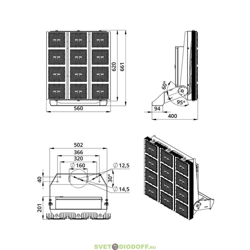 Мощный светодиодный прожектор Плазма S BOX 1000Вт, 162000Лм, 5000К Яркий дневной, оптика 155х70°, IP67