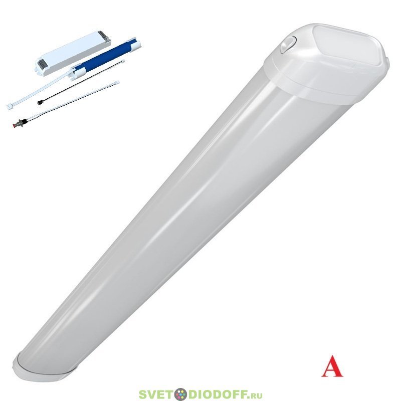 Аварийный линейный светильник «Айсберг Нео» ЭКО CRI80 75Вт, 10850Лм, 5000К Яркий дневной, IP65, Опал, 1500мм, БАП (5Вт 1,5час.)