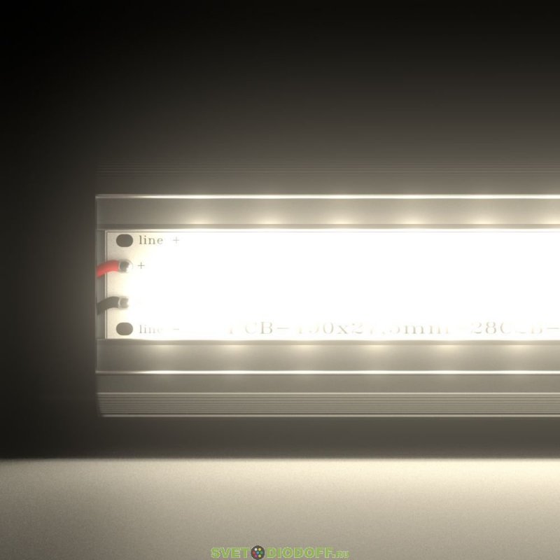 В светильниках «Т-Линия Компакт» используются светодиодные планки на специальной алюминиевой подложке, изготовленные по технологии SMT. Светодиодная планка максимально приближена к рассеивателю, чтобы сократить потери светового потока.