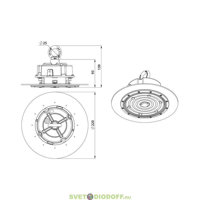 Светильники можно монтировать на рым-болт (базовая комплектация) или кронштейн (опционально).
