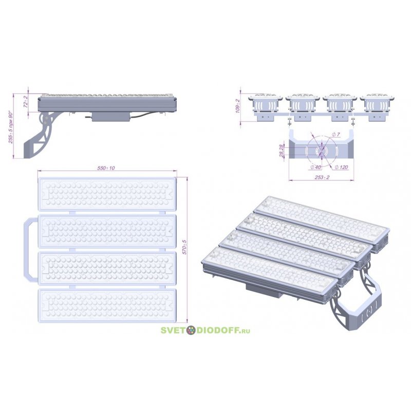 Промышленный светодиодный светильник Пром-4 800Вт, 132000Лм, 5000К Яркий дневной, IP67. КСС Г (концентрированная), оптика 20°