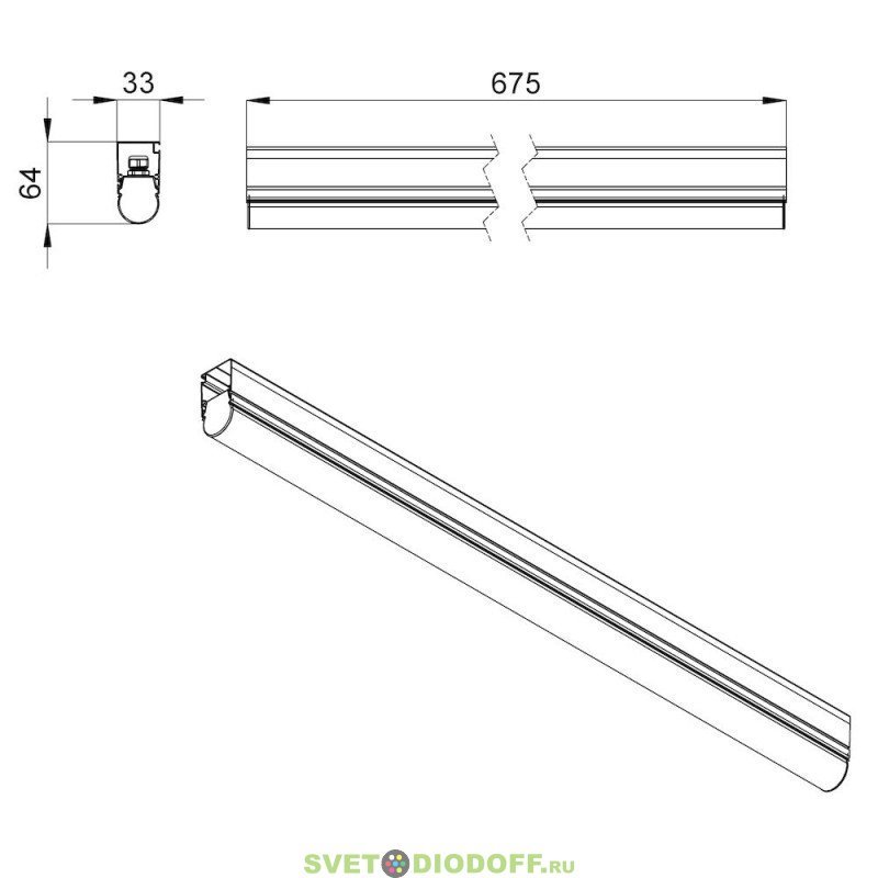 Архитектурный светодиодный светильник ЛИНИЯ Модерн v2.0 Профиль Транзитное Подкл., 6Вт, 820Лм (9Вт/м) 24VDC, 5000К, Опал, 675мм