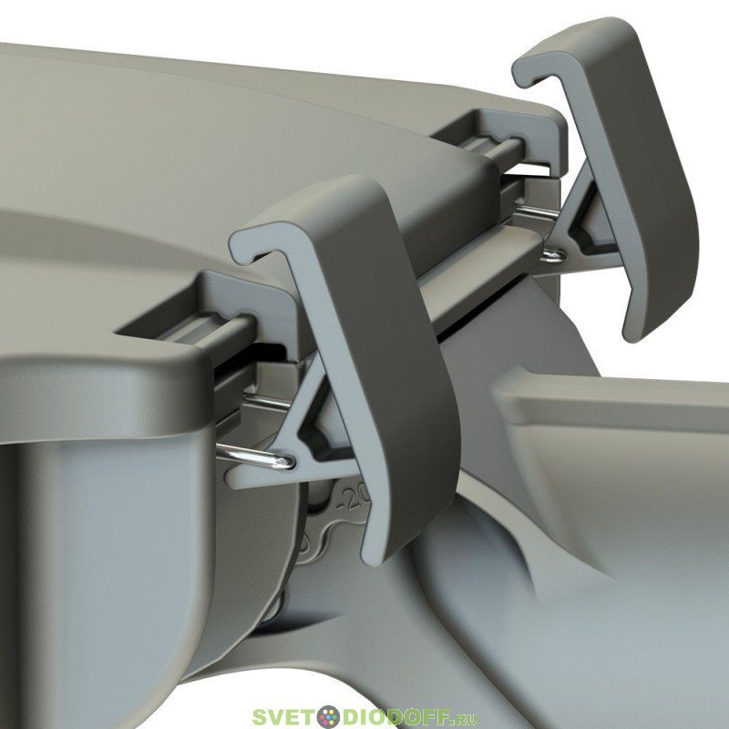 Конструкция корпуса позволяет открывать отсек коммутации без дополнительных инструментов прямо на месте установки светильника – для этого предусмотрены специальные защёлки. Крышка отсека коммутации выполнена съёмной – это позволяет производить горячую замену источника питания светильника.