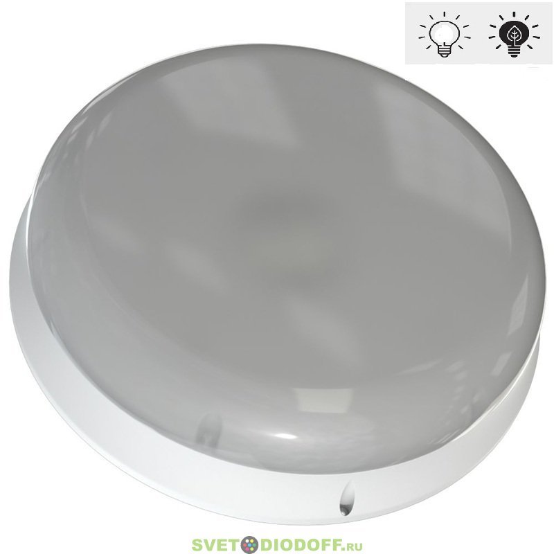 Двухрежимный светодиодный светильник ЖКХ Кронос Нео L ЭКО 25Вт, 2680Лм, 3000К Теплый, IP54/65, Опал, ø350×91мм, Датчик