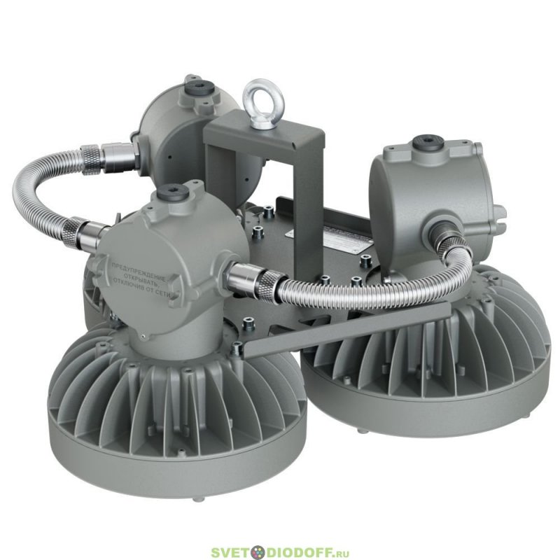 Светильник имеет литой алюминиевый корпус с порошковой окраской, представляющий собой взрывонепроницаемую оболочку с двумя разделенными отсеками.
