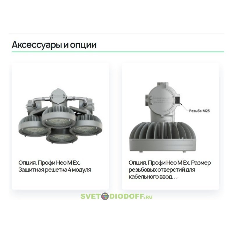 Взрывозащищенный светодиодный светильник Профи Нео M Ex-4-400-К-П30-5070-M20, 400Вт, 58800Лм 5000К IP66, угол 30°