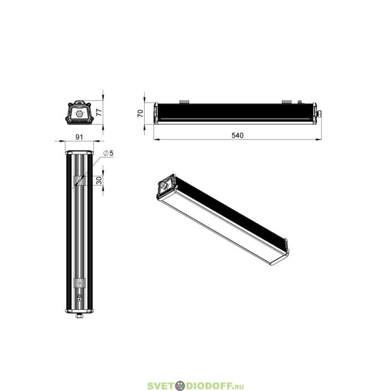 Экструдированный корпус изготовлен из анодированного алюминия, устойчивого к коррозии, имеет торцевые металлические крышки с силиконовым уплотнителем. Большое количество ребер обеспечивает эффективный теплоотвод.